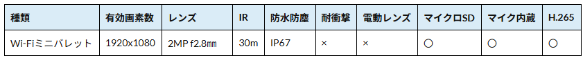 2メガピクセル IR 固定Wifiバレットネットワークカメラ標準価格(税込)3年保証: ¥44,000(販売価格はお問い合わせください)5年保証: ¥69,025(販売価格はお問い合わせください)外寸/重量: 166.2×φ70.0mm/474g※ACアダプター付属本製品の仕様・外観は予告なく変更されることがあります。